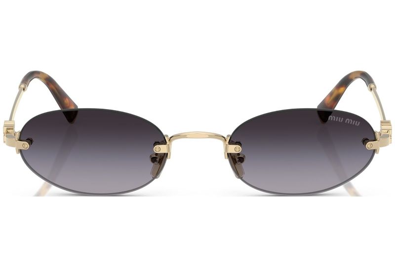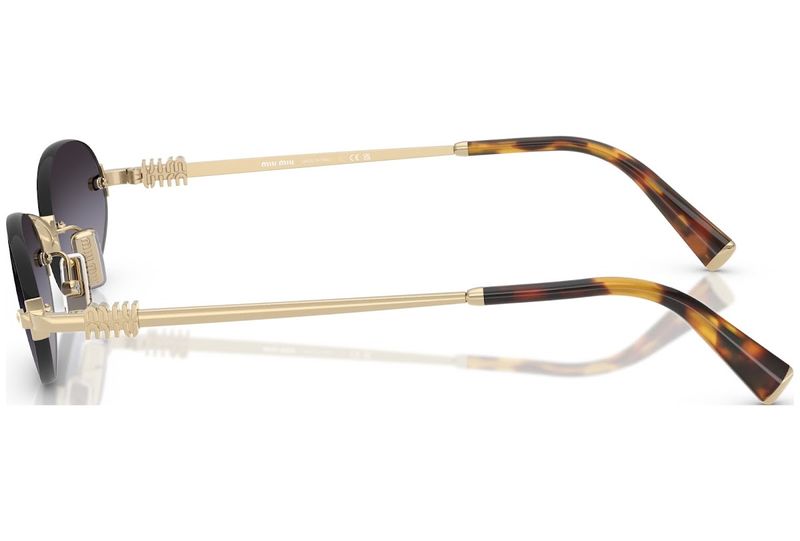 Atitudes classicas e sofisticadas se misturam nos oculos de sol Miu Miu A armacao de metal ultraleve apresenta lentes ovais livres enriquecidas com uma paleta de tons alegres O logotipo vertical da Miu Miu assina as hastes ultrafinas