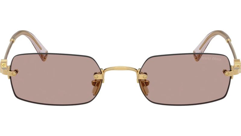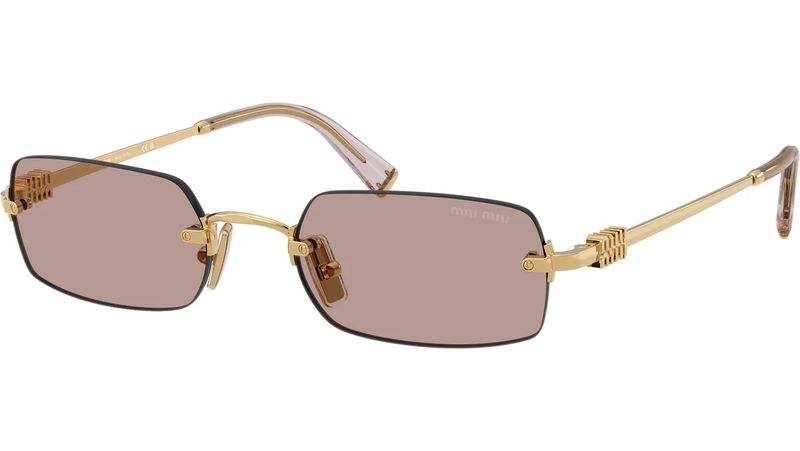 Oculos de sol Miu Miu com um charme sofisticado A armacao de metal ultraleve apresenta lentes retangulares de formato livre, enriquecidas por uma paleta de cores divertida O logotipo vertical da Miu Miu adorna as hastes ultrafinas