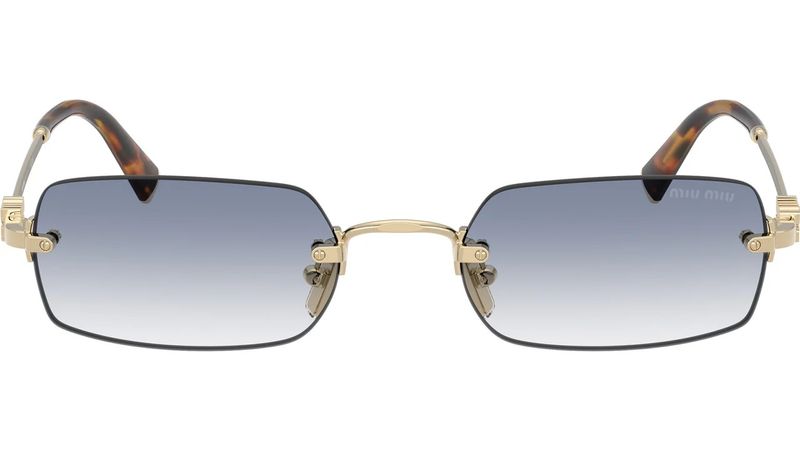 Oculos de sol Miu Miu com um charme sofisticado A armacao de metal ultraleve apresenta lentes retangulares de formato livre, enriquecidas por uma paleta de cores divertida O logotipo vertical da Miu Miu adorna as hastes ultrafinas