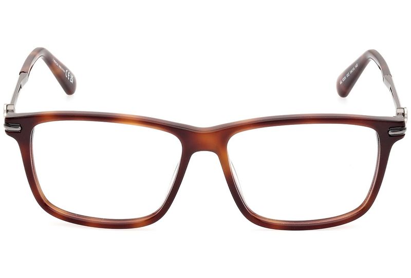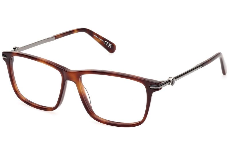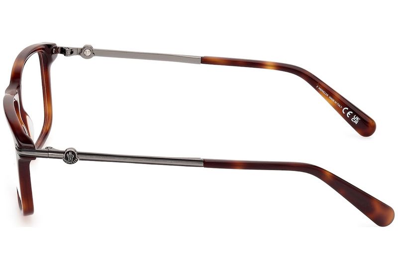 Oculos de grau Moncler ML5205 tem armacao em acetato e hastes finas de metal adornadas discretamente com o logotipo da Moncler