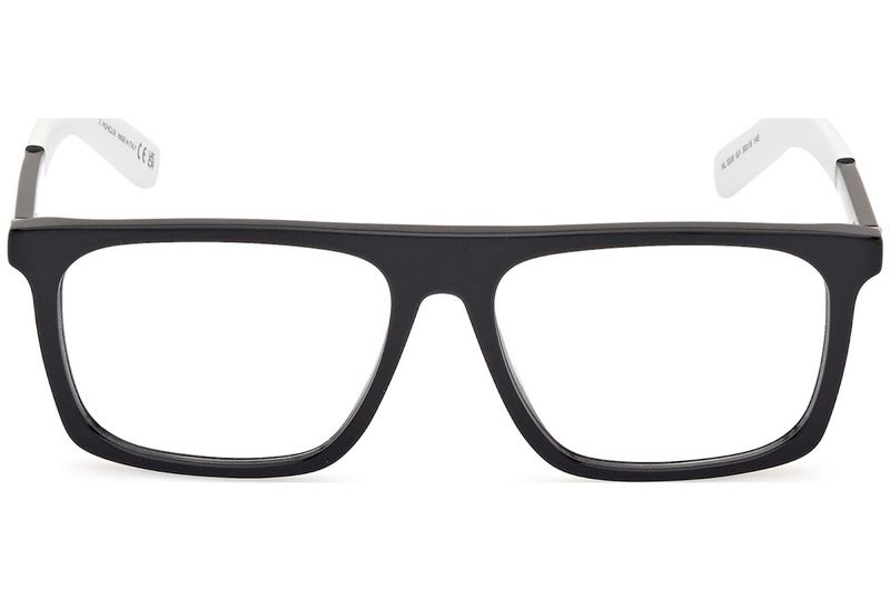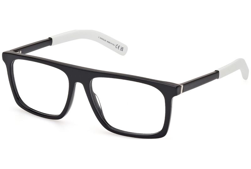 Oculos de grau Moncler ML5206 tem armacao em acetato preto com ponteiras brancas