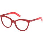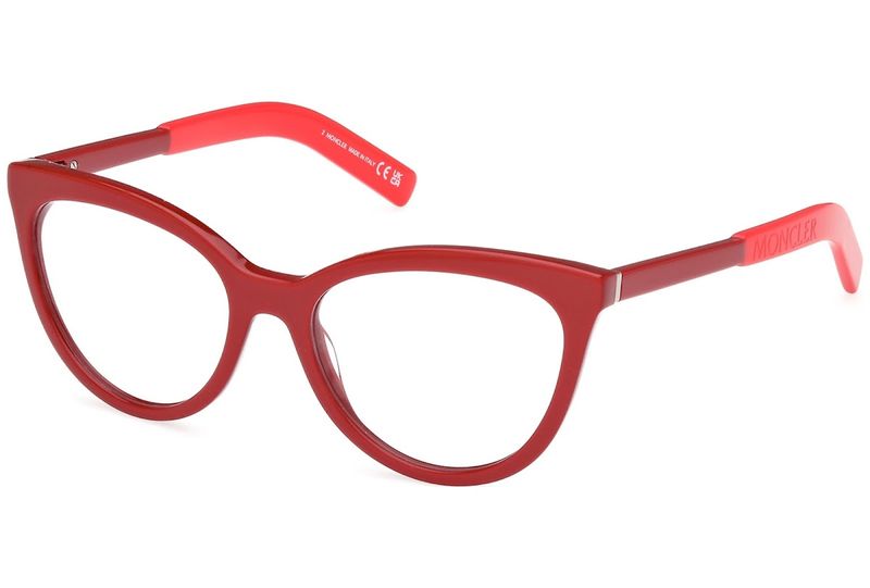 Oculos de grau Moncler ML5208 tem armacao em acetato bordo e vermelho