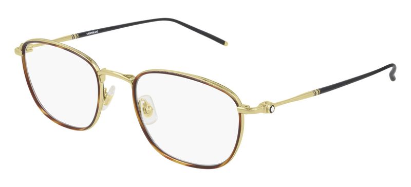 Oculos de grau MontBlanc MB0161O tem armacao em metal dourado com acabamento havana