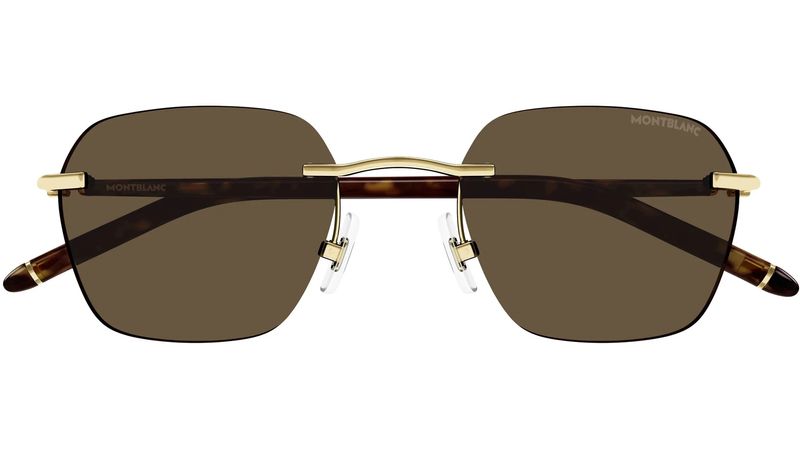 Oculos de sol MontBlanc MB0270S tem armacao em metal dourado com lentes marrom