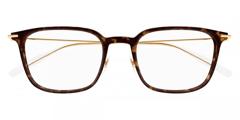 Estes oculos de grau apresentam uma armacao em acetato e metal O Emblema Montblanc e encapsulado no design da haste