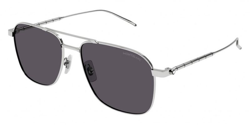 Oculos de sol Montblanc MB0214S tem armacao em metal prateado e lentes fume