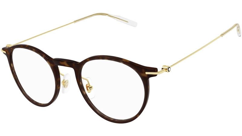 Montblanc MB0099O Estes oculos de grau apresentam uma armacao em acetato e metal O Emblema Montblanc e encapsulado no design da haste