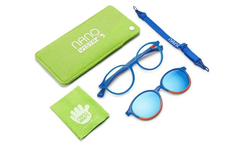 O modelo Flicker SC - 2 em 1 da NanoVista possui todos os recursos dos oculos NANO indestrutiveis: resistentes, leves e superflexiveis; mas agora com um clipe solar magnetico para proteger os olhos dos raios solares Gracas as lentes antirreflexo e com bloqueio de luz azul, eles protegerao as criancas da radiacao UV com apenas um clipe Idade 4 a 6 anos