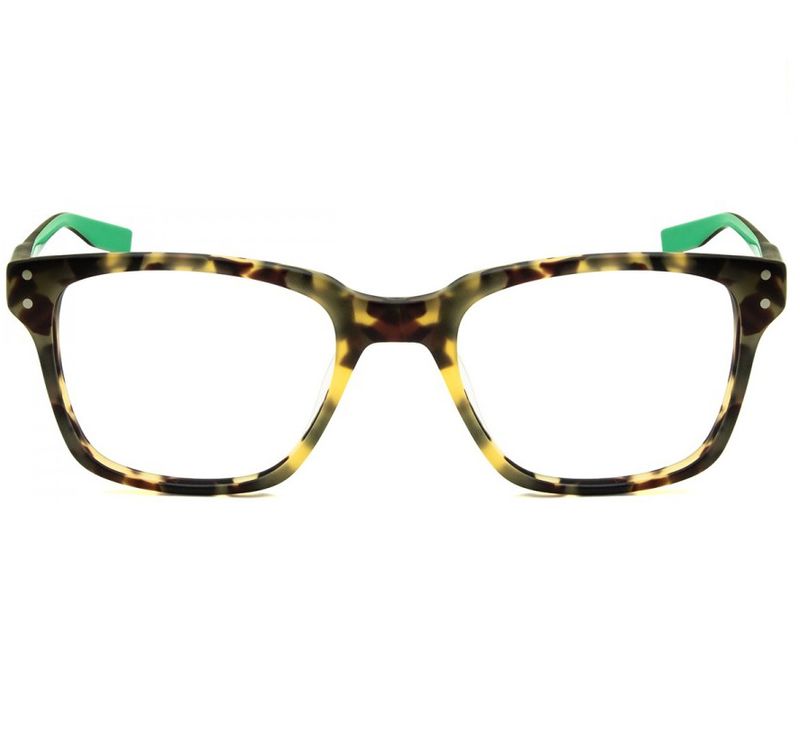 Oculos de grau Nike 7232 e um modelo unissex, com armacao quadrada em acetato havana amarelo com detalhes em verde >> Comercializamos online somente a armacao, sem lentes de prescricao