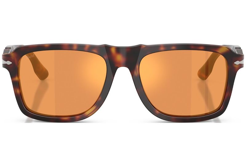 Armacoes retangulares arrojadas encontram a refinada arte italiana neste impressionante modelo em acetato O design das hastes flui com movimentos inspirados em ondas, trazendo uma fluidez orgânica a silhueta estruturada Na dobradica, um parafuso P gravado eleva a engenharia a arte, demonstrando a filosofia da Persol de que cada detalhe importa