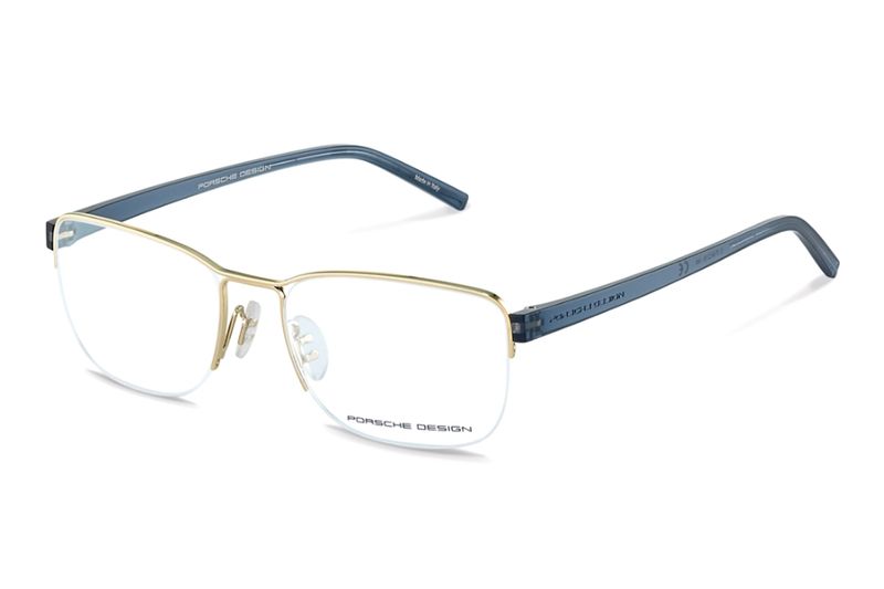 Oculos de grau Porsche P8357 tem armacao meio aro confeccionada com fronte em metal dourado