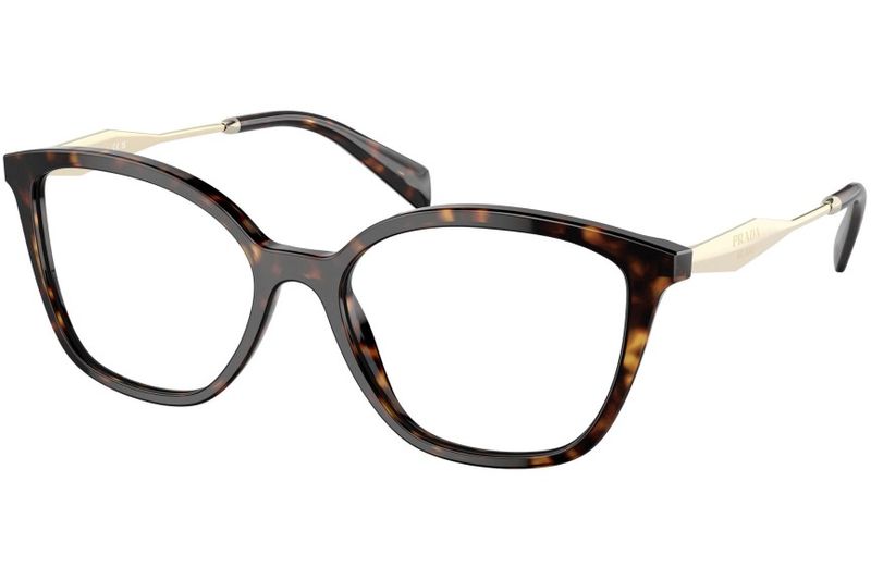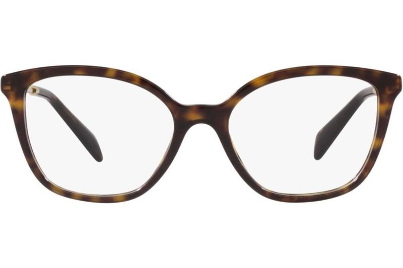 Oculos de grau Prada PR02ZV tem armacao em acetato tartaruga e hastes em metal
