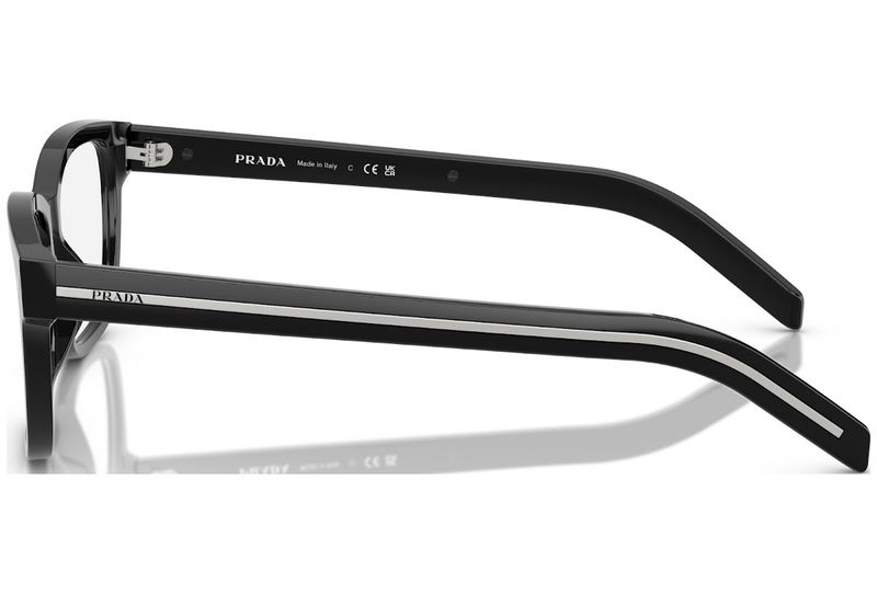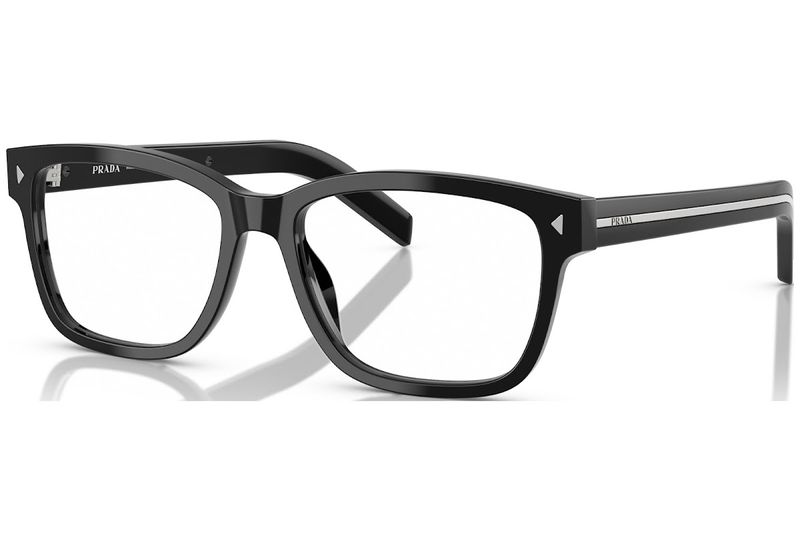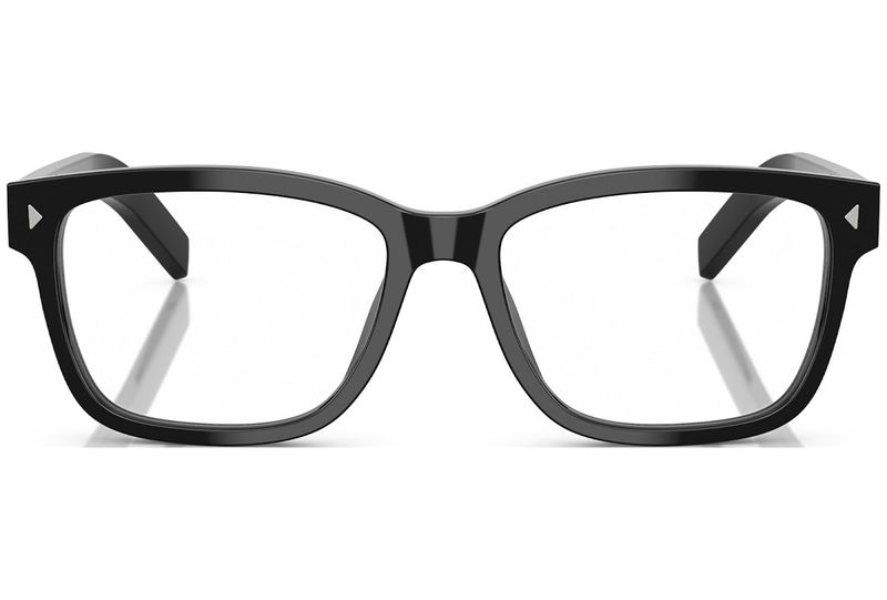 A Prada atinge um equilibrio entre o contemporâneo e o classico com este design retangular de acetato Com triângulos de metal na frente e hastes elegantes, este modelo optico incorpora a elegância masculina, realcada por placas de metal que ostentam o logotipo iconico da marca