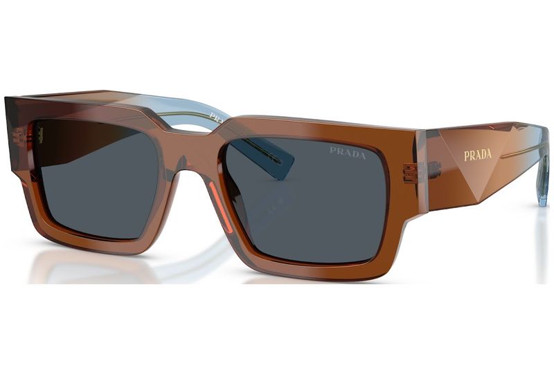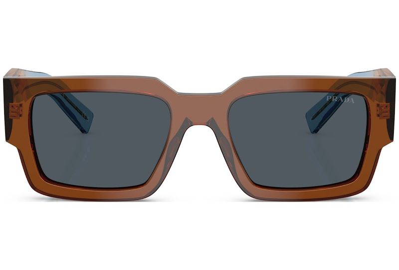Oculos de sol em acetato com design quadrado contemporâneo A grande armacao frontal com perfil arrojado combina com hastes facetadas, realcadas por um design tridimensional exclusivo com a inscricao do logotipo da Prada Algumas cores apresentam uma combinacao de lentes de acetato, destacadas por cores contrastantes nos perfis das lentes