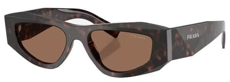 Oculos de sol em acetato com estetica contemporânea A parte frontal retangular geometrica apresenta volumes generosos, enquanto as hastes facetadas apresentam detalhes tridimensionais e o logotipo da Prada