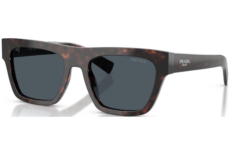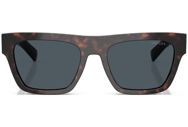Oculos de sol em acetato com elegância atemporal A armacao frontal ampla e quadrada apresenta linhas marcantes, enquanto as hastes minimalistas sao adornadas com o logotipo da Prada Milano