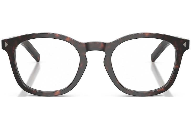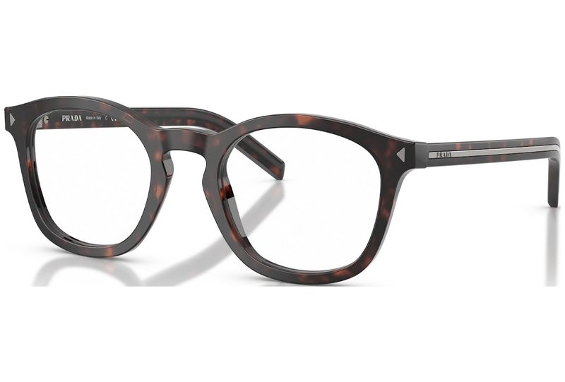 Inspirados na elegância discreta que e marca registrada da Prada, estes oculos de grau combinam detalhes classicos com uma silhueta moderna A armacao em acetato no formato panthos apresenta pinos triangulares na parte frontal e uma ponte em formato de fechadura, enquanto a placa metalica alongada nas hastes confere uma assinatura sutil, porem inconfundivel