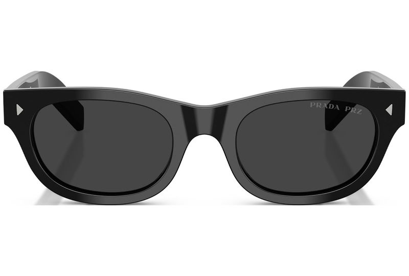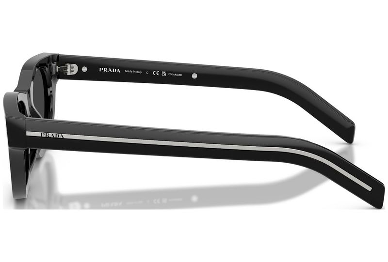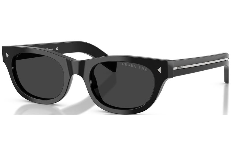 Oculos de sol em acetato com uma estetica classica e atemporal A armacao combina linhas limpas com detalhes refinados, e as hastes sao adornadas com a iconica placa de metal com o logotipo Prada Lettering