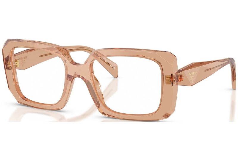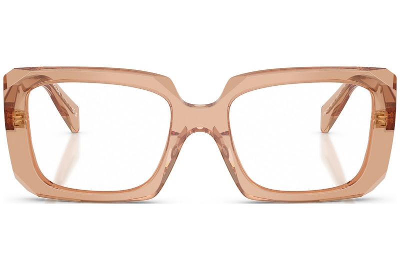 Silhuetas classicas conferem robustez, mas a Prada lhes da um toque moderno e inovador Estes oculos de grau quadrados oversized apresentam uma frente facetada e hastes arrojadas, exibindo superficies triangulares e o iconico logotipo da Prada