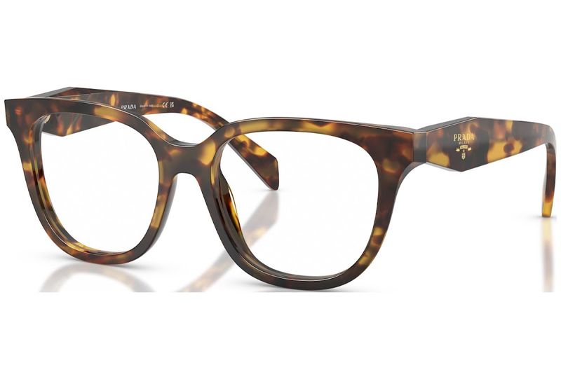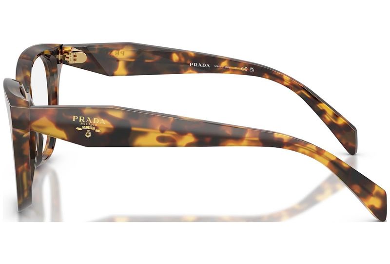 Feminilidade moderna, ao estilo Prada Estes oculos de grau gatinho combinam elegância classica com inovacao sutil, apresentando hastes com interior facetado e exterior liso que exibem o logotipo caracteristico da marca com distincao refinada