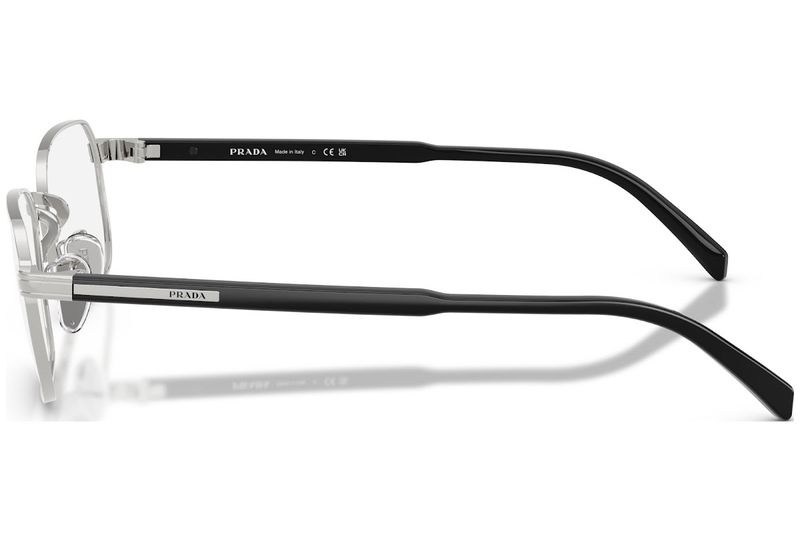 Equilibrando modernidade e atemporalidade, estes oculos de grau quadrados e delicados personificam a estetica refinada da Prada A armacao leve de metal e combinada com hastes de acetato, onde uma versao reduzida da iconica placa confere um acabamento distinto — sutil, sofisticado e inconfundivelmente Prada