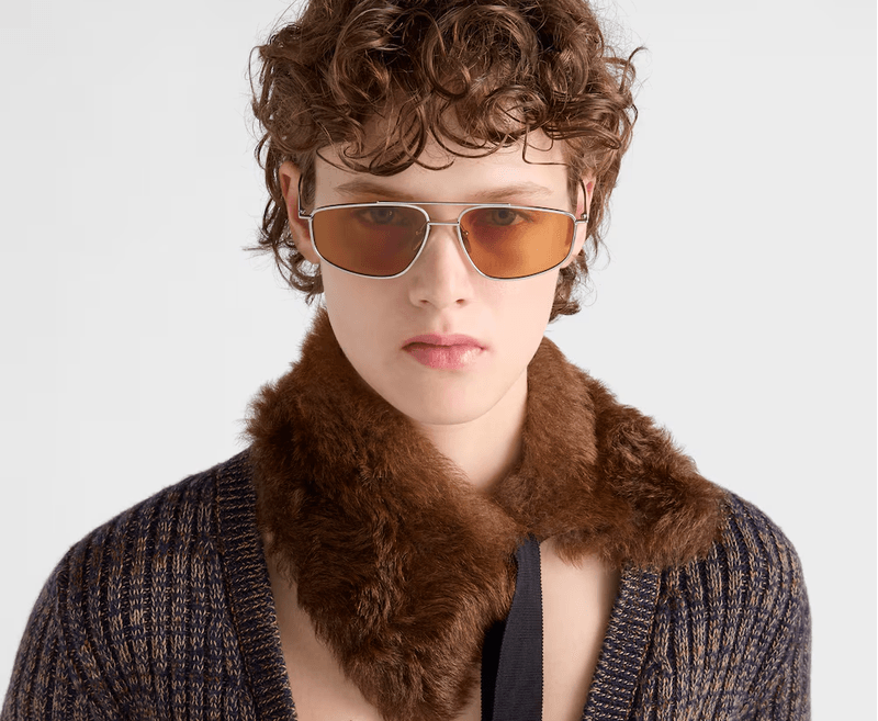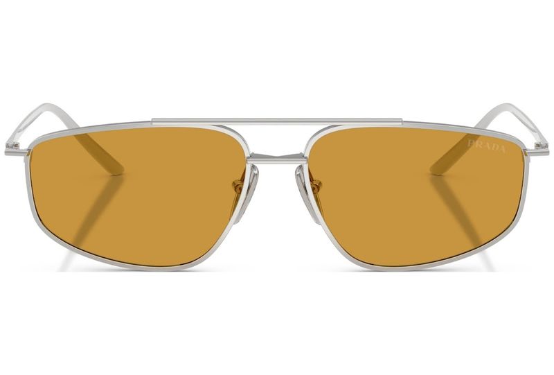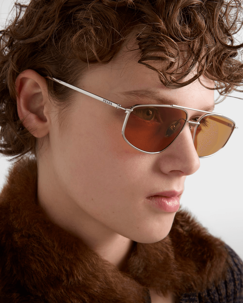 Oculos de sol com armacao metalica ultrafina e o toque sofisticado de uma ponte dupla As hastes elegantes sao adornadas com a inscricao do logotipo da Prada finamente gravada