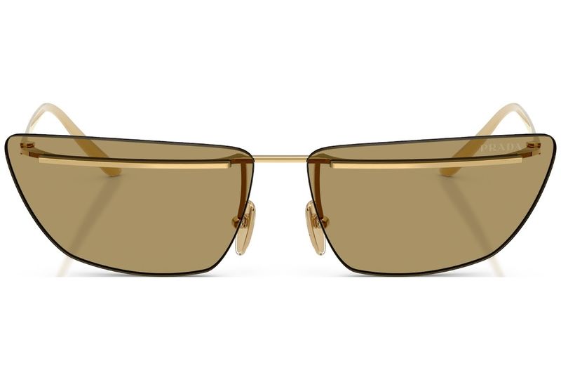 Oculos de sol em metal com uma silhueta ultraleve As lentes sem aro integradas a armacao em metal criam uma estetica clean e sofisticada O logotipo de letras Prada e delicadamente gravado nas hastes
