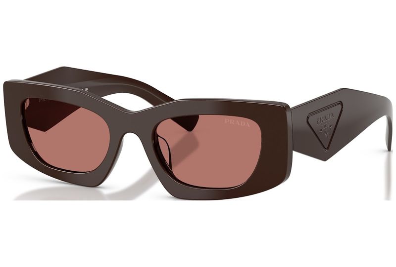 Oculos de sol ultraleves em acetato com design escultural e sofisticado A parte frontal apresenta um formato retangular arrojado com delicados detalhes em olho de gato As hastes geometricas marcantes sao realcadas pelo iconico logotipo triangular da Prada, finamente gravado