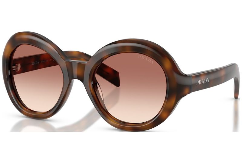 Oculos de sol em acetato com um design redondo sofisticado A armacao oversized apresenta volumes generosos e perfis suaves que conferem ao modelo um charme refinado e contemporâneo As hastes arredondadas sao adornadas com o logotipo da Prada com acabamento em esmalte