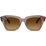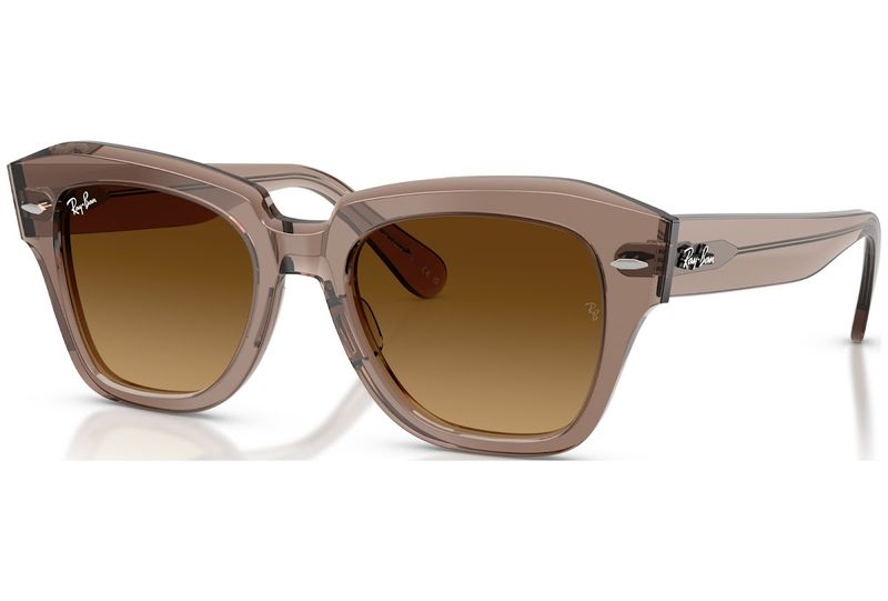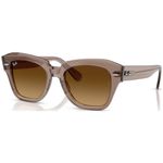 Os oculos de sol Ray-Ban State Street tem armacao quadrada em acetato marrom para um visual estiloso O acabamento polido adiciona um toque de sofisticacao a esses oculos Perfeitos para adicionar um toque retro a qualquer look, seja para passear pelas ruas da cidade ou relaxar na piscina