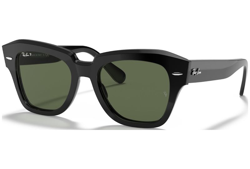 A familia Wayfarer continua com os Statestreet Sua forma elegante, quadrada, realizada em acetato cria um visual contemporâneo As pontas das hastes no atualissimo acetato e o logo Ray-Ban arrematam o modelo
