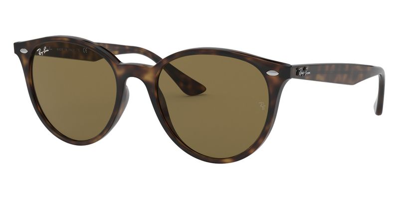 Oculos de sol Ray-Ban RB4305 tem armacao redonda confeccionada em acetato tartaruga As lentes classicas marrom B15 garantem protecao contra os raios UV