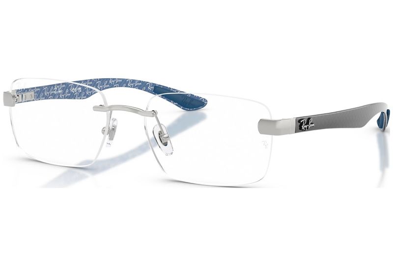 Os oculos RB8423 Optics sao uma combinacao perfeita de inovacao e design elegante Estes oculos quadrados sem aro apresentam linhas marcantes e ângulos precisos para um visual contemporâneo e estruturado Fabricados em metal leve e resistente, estes oculos Ray-Ban incluem plaquetas nasais ajustaveis ??para maior conforto, enquanto as hastes em fibra de carbono conferem excepcional resistencia