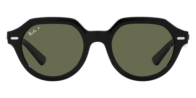 Os oculos de sol Ray-Ban RB4399 Gina sao a resposta se voce esta procurando um formato quadrado classico com um toque moderno Estes oculos de sol, concebidos para todos os sexos, tem uma armacao preta polida e lentes verdes As hastes finas e planas proporcionam um uso confortavel, perfeito para uso diario e eventos casuais