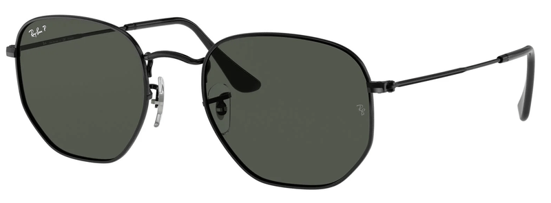 Oculos de Sol Ray-Ban RB 3548NL e um modelo unissex, com armacao no formato hexagonal A peca e produzida em metal preto e conta com lentes polarizadas verdes que garantem protecao contra os raios UV