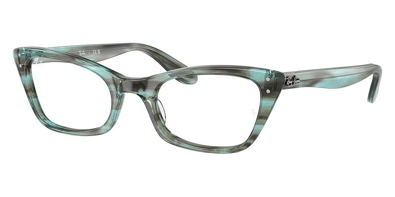 Oculos de grau Ray Ban RX5499 Lady Burbank tem armacao gatinho em acetato listrado verde
