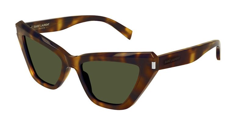 Oculos de sol Saint Laurent SL 466 tem armacao gatinho em acetato havana e lentes verdes