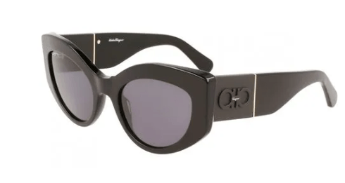 Oculos de sol com armacao gatinho As hastes de acetato arrojadas do modelo apresentam um elemento de bloco de cor fosca com uma placa injetada que hospeda o iconico elemento duplo Gancini Barras de metal brilhante abracam discretamente a placa injetada Ajuste global Lentes anti-UV, anti-riscos Armacao compativel com lentes graduadas