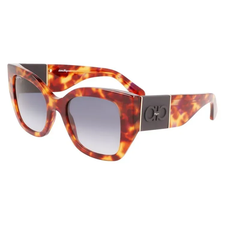 Oculos de sol com armacao retangular As hastes de acetato arrojadas do modelo apresentam um elemento de bloco de cor fosca com uma placa injetada que hospeda o iconico elemento duplo Gancini Barras de metal brilhante abracam discretamente a placa injetada Ajuste global Lentes anti-UV, anti-riscos Armacao compativel com lentes graduadas