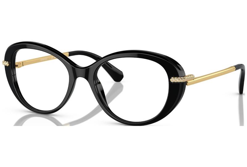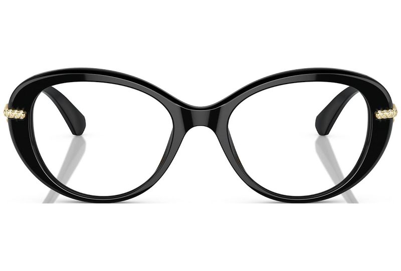 Tudo se resume a volumes com este modelo de grau Dextera Round, que traz a frente oval em acetato e hastes metalicas em formato de tubo As hastes aparecem em dois niveis, com a parte superior se conectando a frente e decorada com cristais pave Ponteiras em acetato na mesma cor que a frente oferecem mais conforto, bem como trazem o logo sutil Deslumbrante design redondo nas hastes com cristais pave perto da frente, mostrando a precisao da Swarovski no corte de cristais