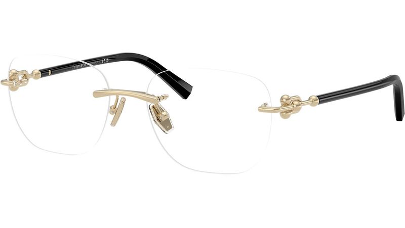 Inspirado na forca e sofisticacao da linha HardWear by Tiffany, este modelo de oculos sem aro destaca os iconicos elos da armacao como ponto focal Com ponte nasal baixa, plaquetas ajustaveis ??e ponteiras de acetato nas hastes, este design combina elegância e conforto moderno com perfeicao