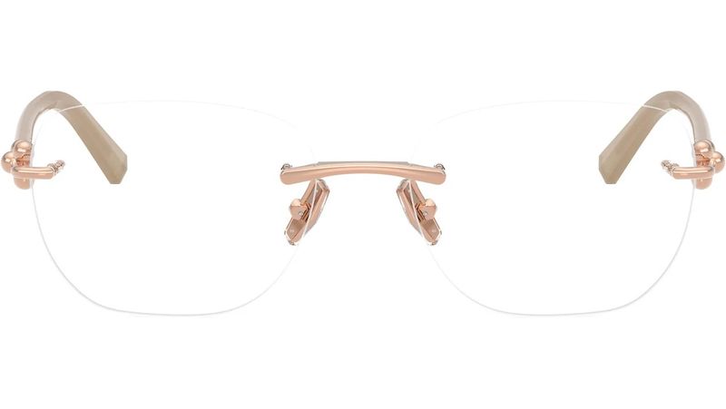 Inspirado na forca e sofisticacao da linha HardWear by Tiffany, este modelo de oculos sem aro destaca os iconicos elos da armacao como ponto focal Com ponte nasal baixa, plaquetas ajustaveis ??e ponteiras de acetato nas hastes, este design combina elegância e conforto moderno com perfeicao
