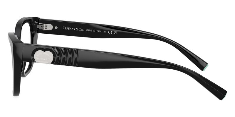 As bordas angulares deste modelo optico de olho de gato em bioacetato proporcionam um visual moderno e uma sofisticacao incomparavel As hastes apresentam um coracao Return to Tiffany cortado de forma unica, que cria um impressionante efeito ondulado no bioacetato