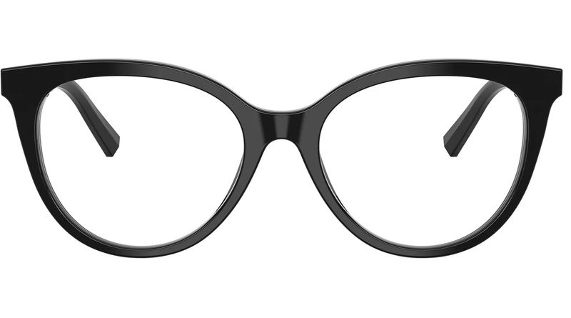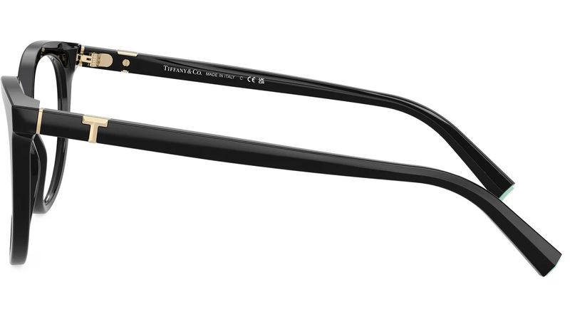 Uma nova versao de um motivo classico, estes oculos de grau estilo olho de gato apresentam um refinado motivo T by Tiffany nas hastes finas, ainda mais realcados por uma tampa de dobradica de metal combinando