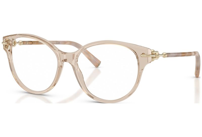 Esta armacao de oculos estilo olho de gato e elegantemente descomplicada, apresentando cristais cravejados nas hastes com elos HardWear by Tiffany
