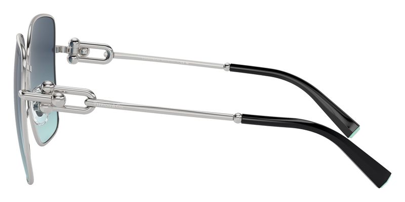 Inspiradora, fortalecedora e, acima de tudo, inabalavel, a colecao Tiffany T nos lembra das conexoes que sentimos, mas que nem sempre conseguimos ver Este par de oculos de sol Tiffany T e confeccionado em metal prateado com lentes gatinho em degrade Tiffany Blue Este design estreito em forma de olho de gato e complementado por um motivo T chanfrado nas hastes