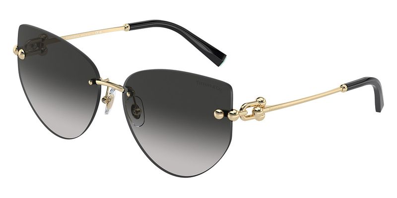 A Tiffany HardWear e inspirada na atitude e na energia da cidade de Nova York Inspirados nos codigos de design que definem a colecao de joias, esses oculos de sol apresentam elos de medicao caracteristicos como dobradicas nas hastes As armacoes sao confeccionadas com metal dourado claro e lentes cinza em formato de borboleta gradiente