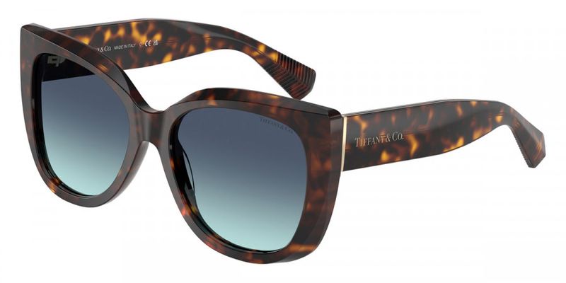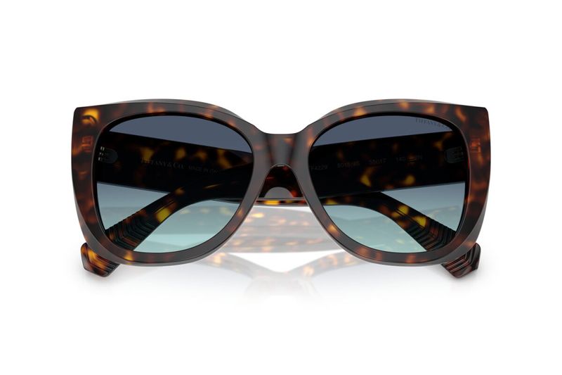 Uma nova forma de armacao facetada e combinada com o logo Tiffany Co na haste e uma tampa de metal na articulacao, complementando-se lindamente Um novo design de haste apresenta um logo refinado incorporado sob bioacetato e uma tampa de metal na articulacao