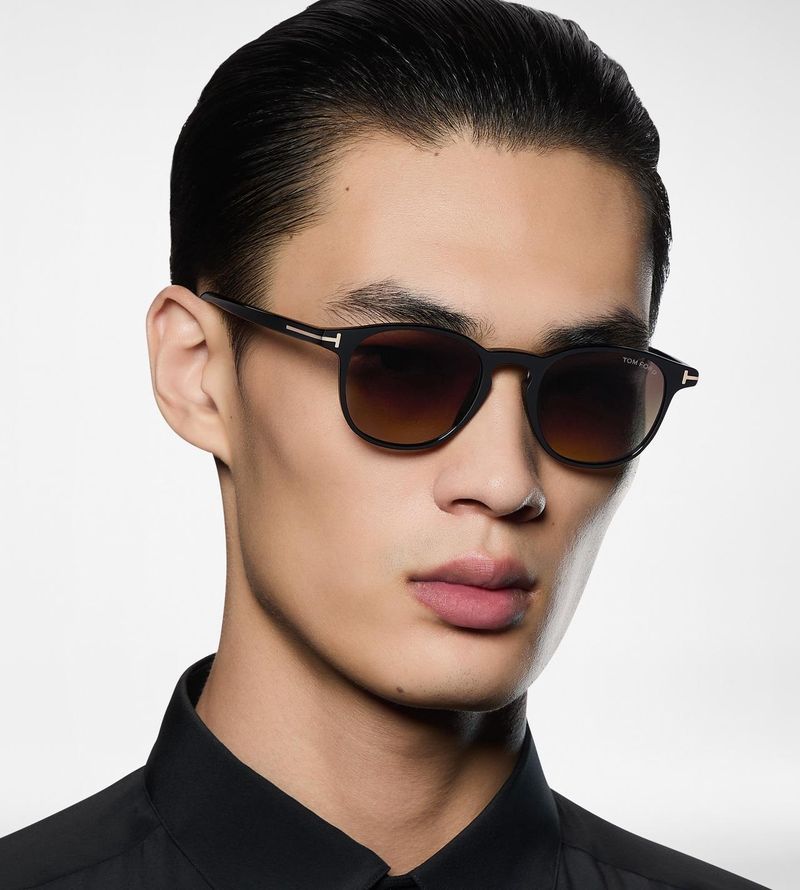 Tom Ford Holt-02 FT1302 Uma armacao estilo pantos refinada e fina, de extrema elegância e simplicidade O logotipo T em metal define as hastes e confere a parte frontal uma estetica distinta