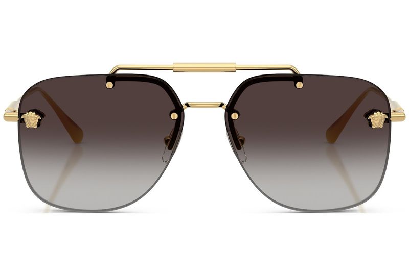 Com lentes sem aro e estrutura tubular de metal, este modelo aviador possui um forte apelo unissex Ângulos irregulares adicionam um toque geometrico, enquanto o iconico motivo da Medusa, marca registrada da Versace, e o logotipo gravado a laser conferem um toque de iconicidade discreta